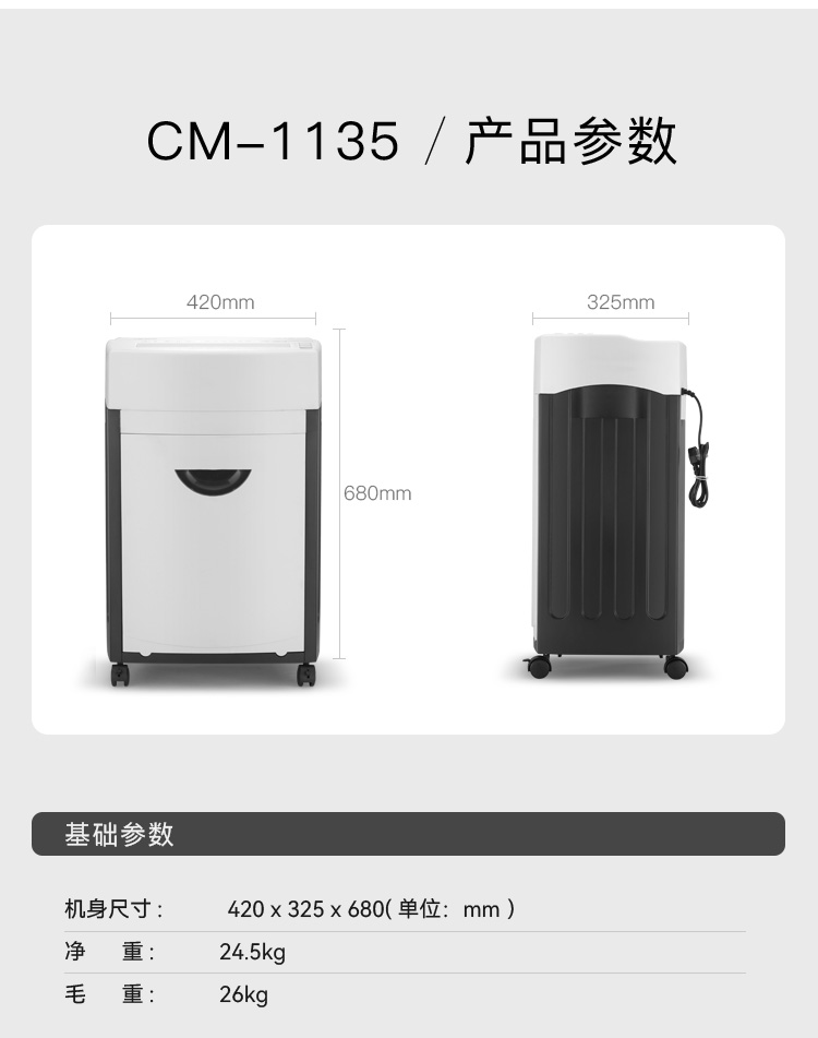 科密CM-1135 保密商用碎纸机