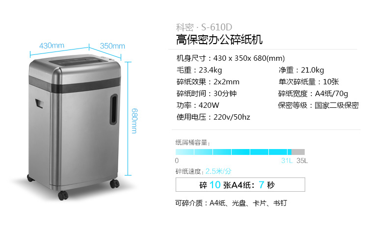 科密S-610D 碎卡光盘保密商用碎纸机