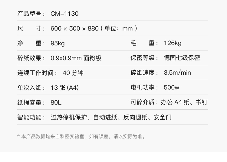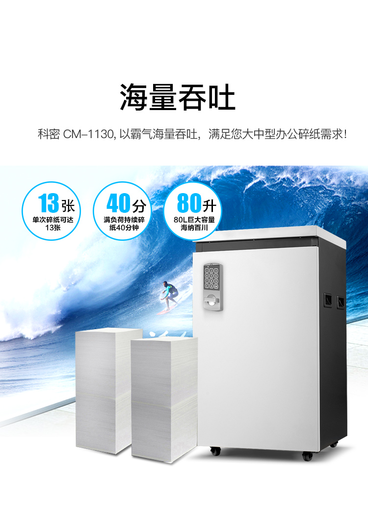 科密CM-1130 保密碎纸机 13张/次 40分钟 80L