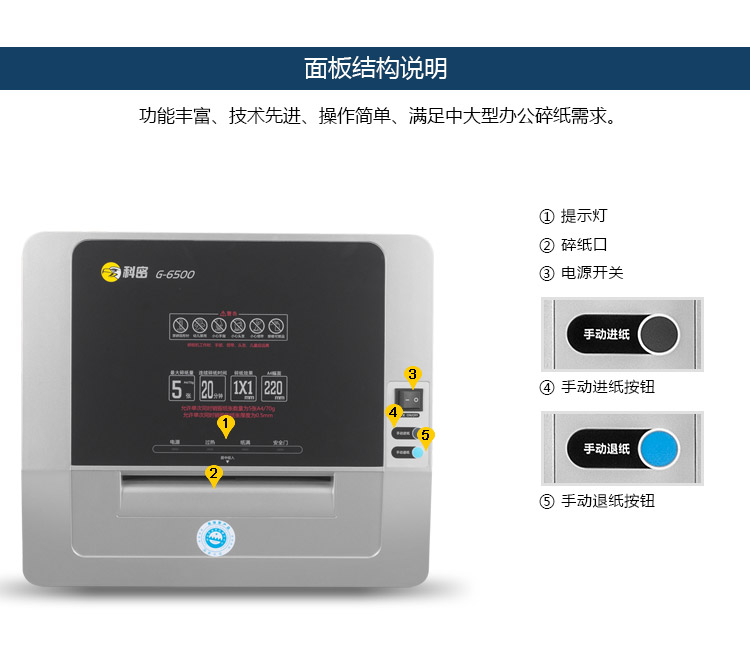 科密金盾G-6500 保密商用碎纸机 5张/次 20分钟
