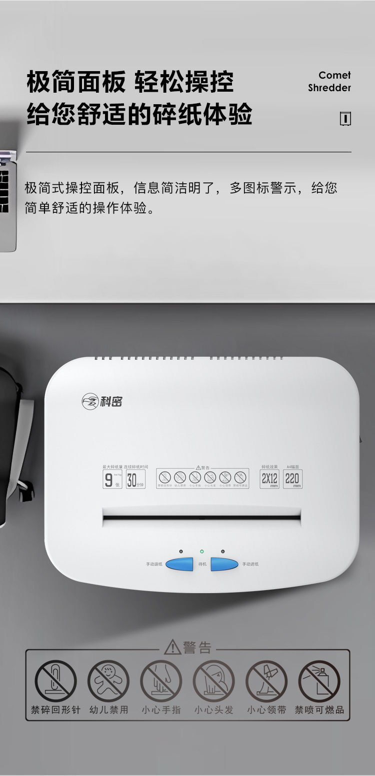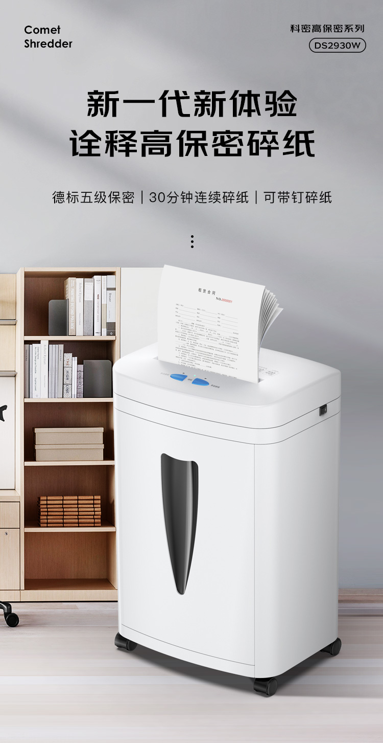 科密DS2930W 30分钟9张5级保密碎纸机