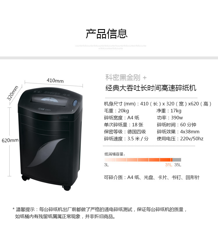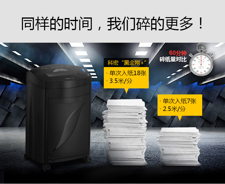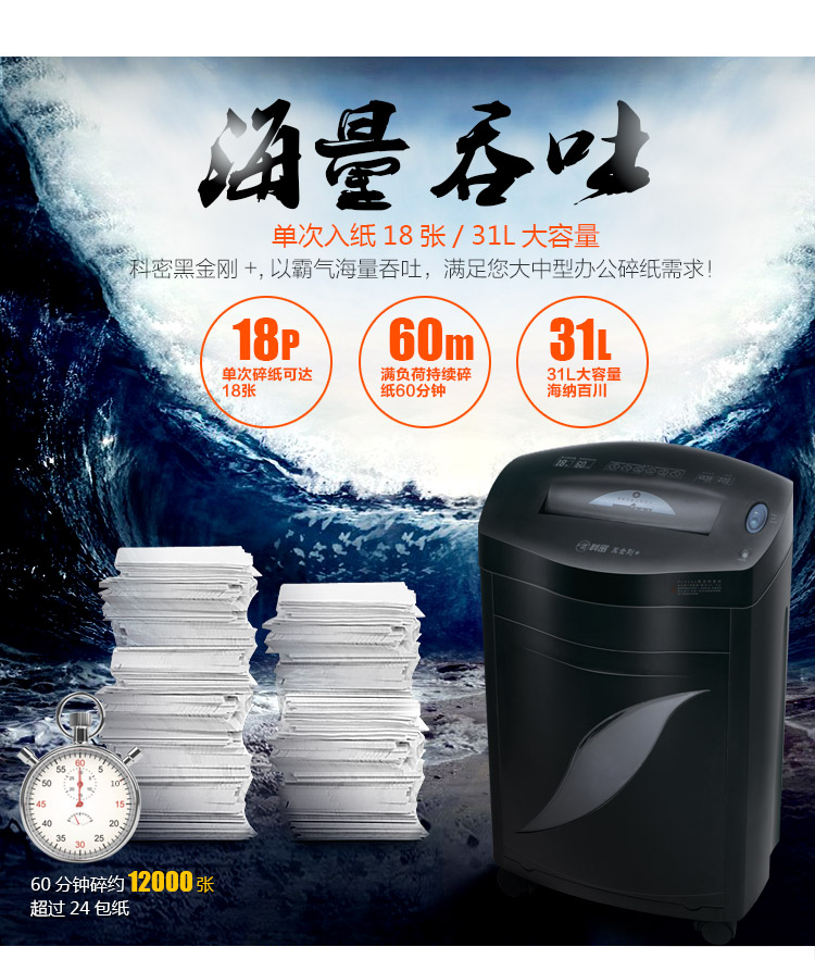 科密黑金刚+ 单次18张 持续60分钟办公商用碎纸机