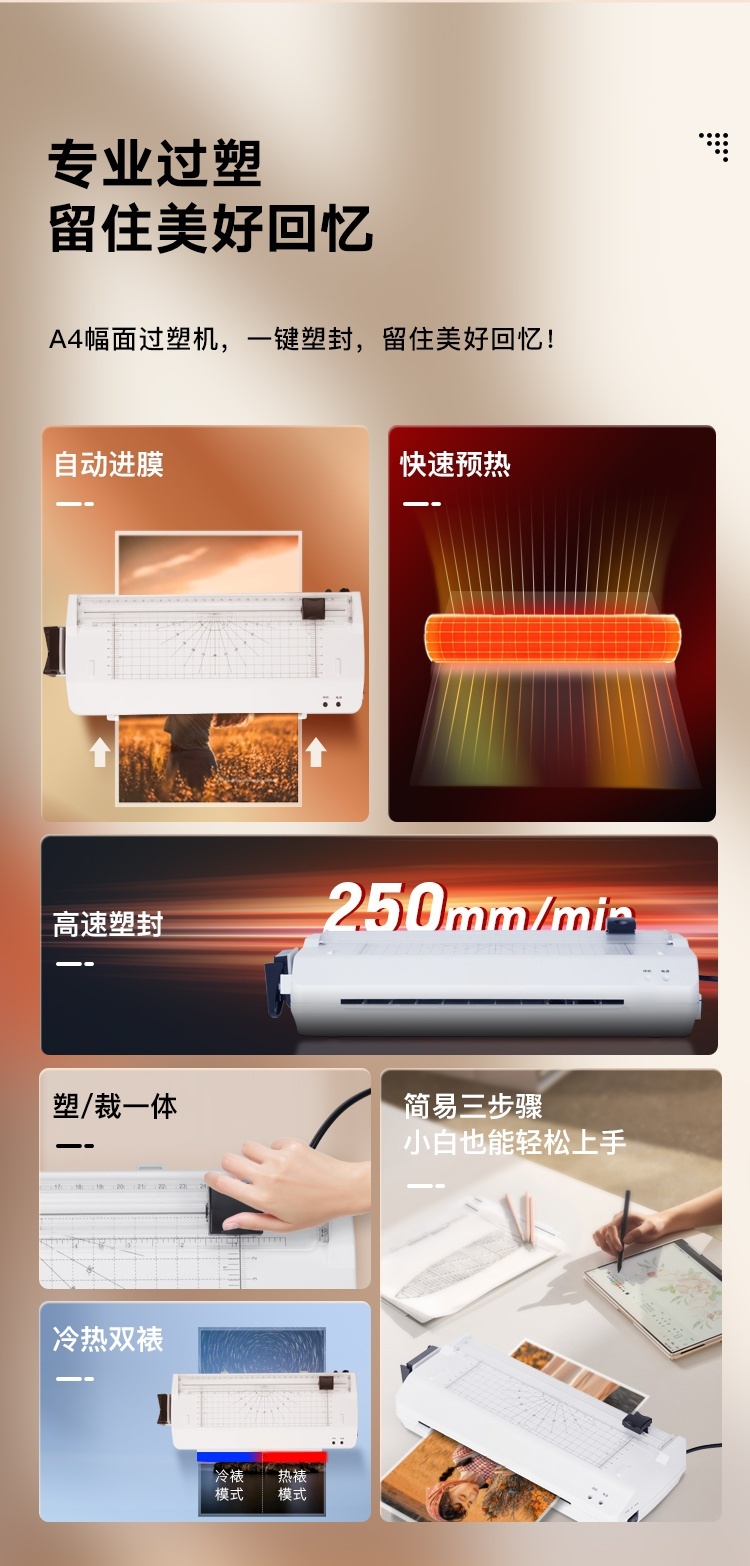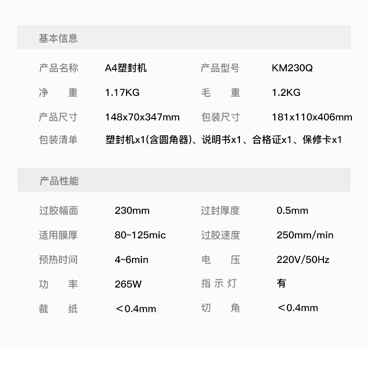 科密KM230Q A4多功能办公家用塑封机带切刀