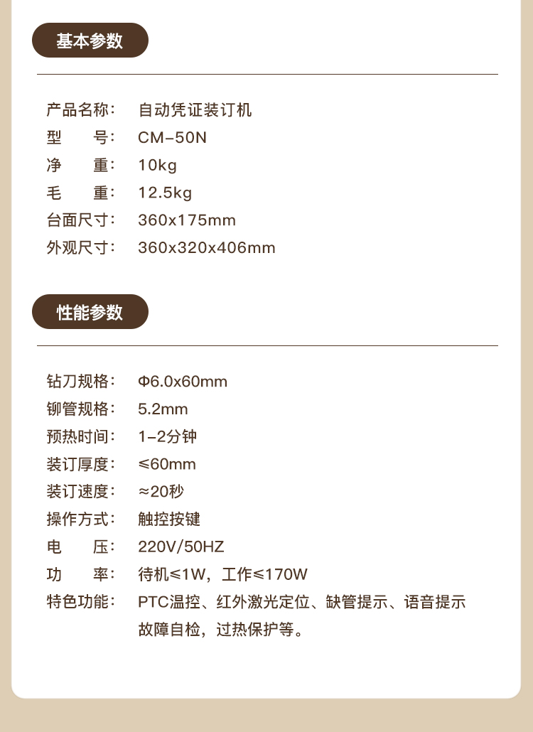 科密CM-50N 600页财务装订机