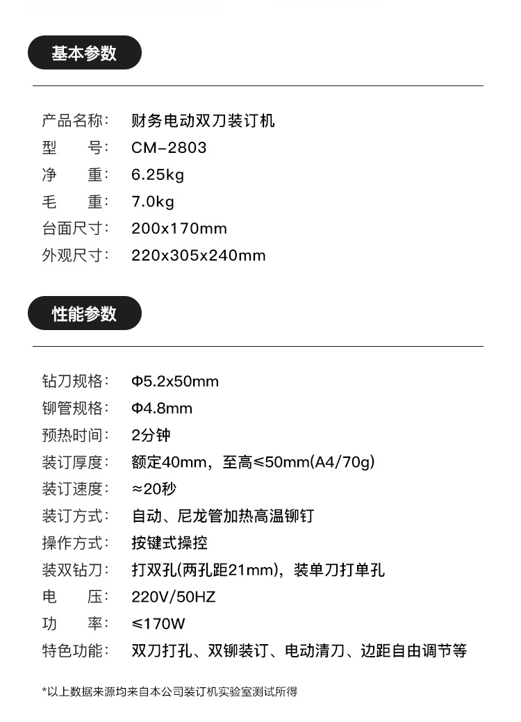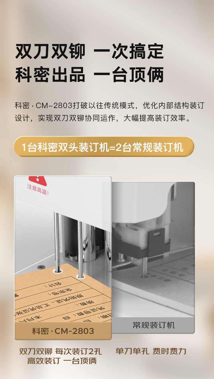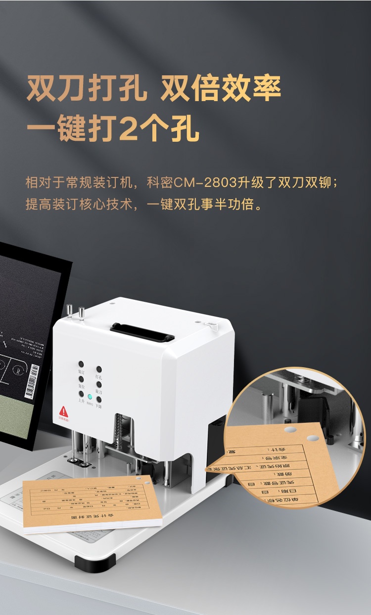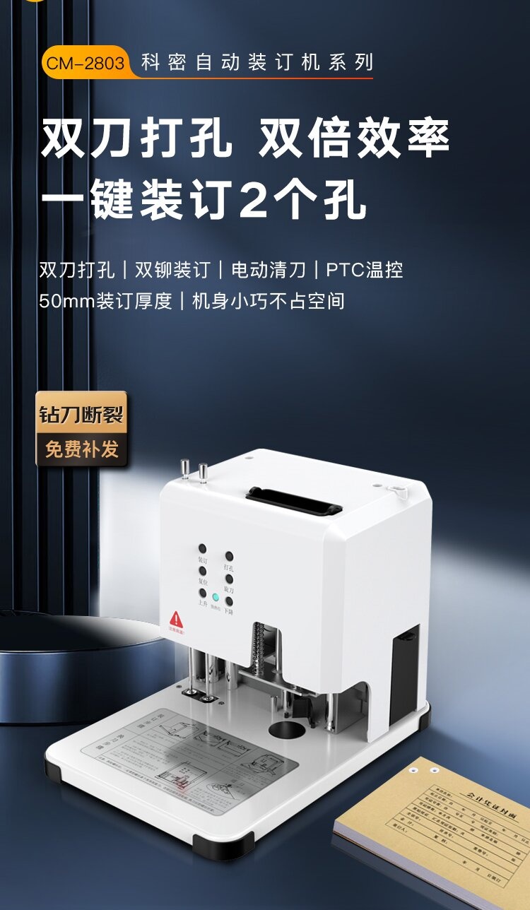 科密CM-2803 一键双孔同时装订 500页财务装订机