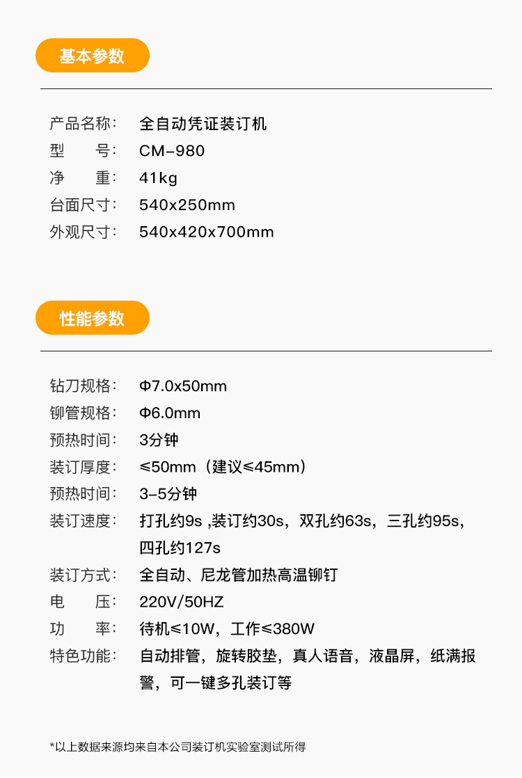 科密CM-980 装订机 凭证档案文件打孔机