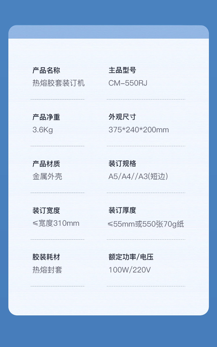 科密CM-550RJ 550页热熔财务装订机胶装机
