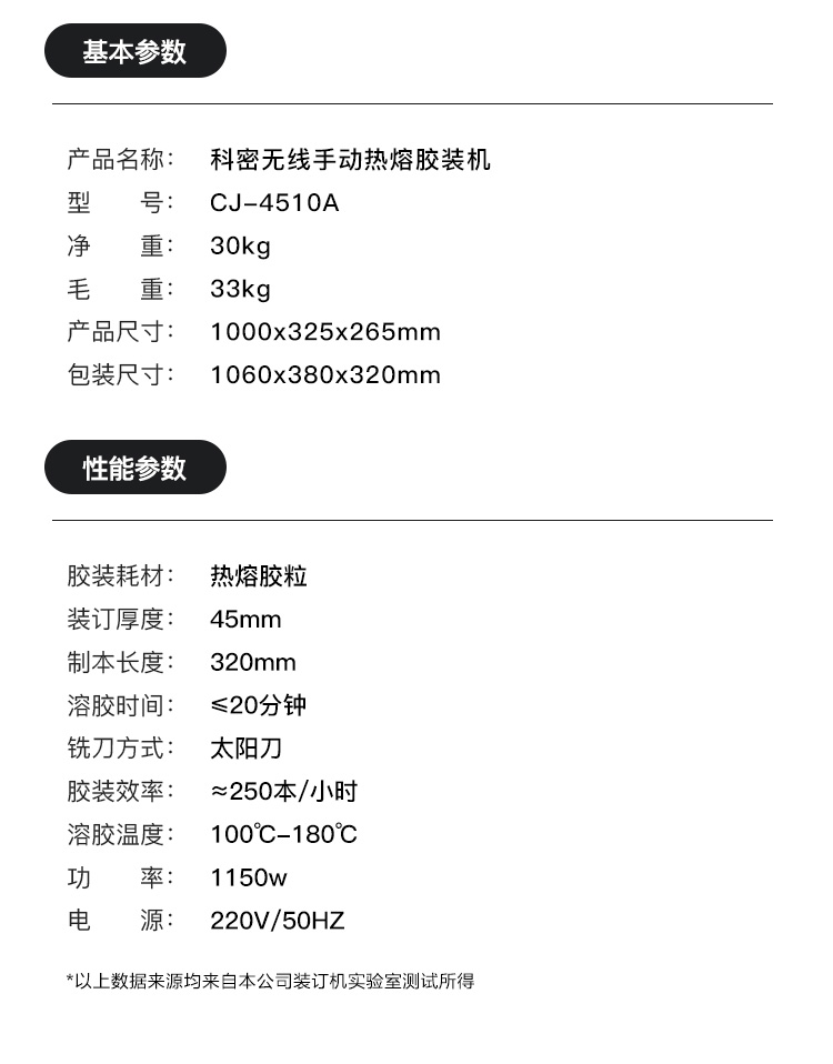 科密CJ-4510A 桌面无线 热熔胶粒电动装订机
