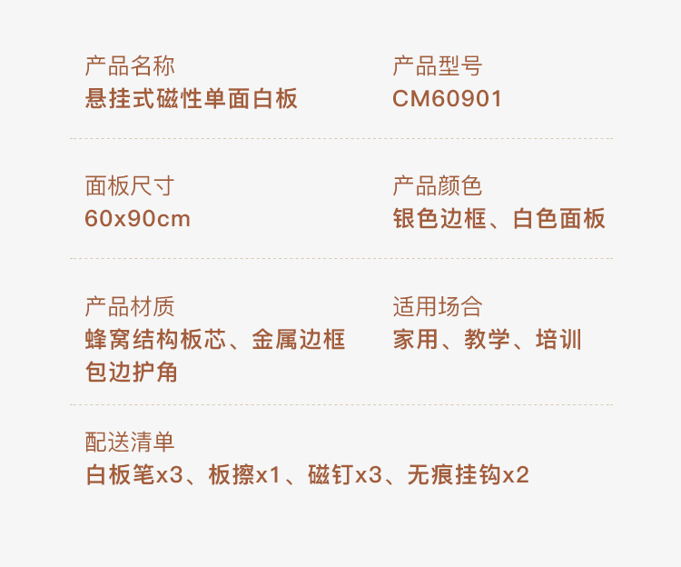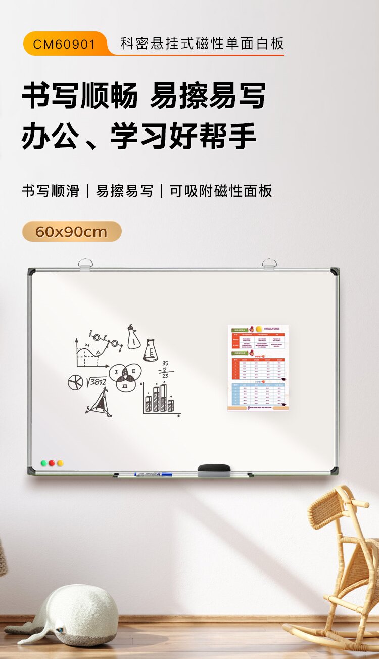 科密CM60901 挂式白板 60*90cm书写磁性白板