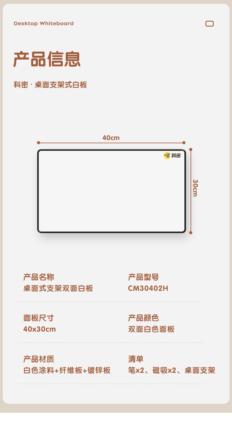 科密CM30402H 40X30cm桌面小白板