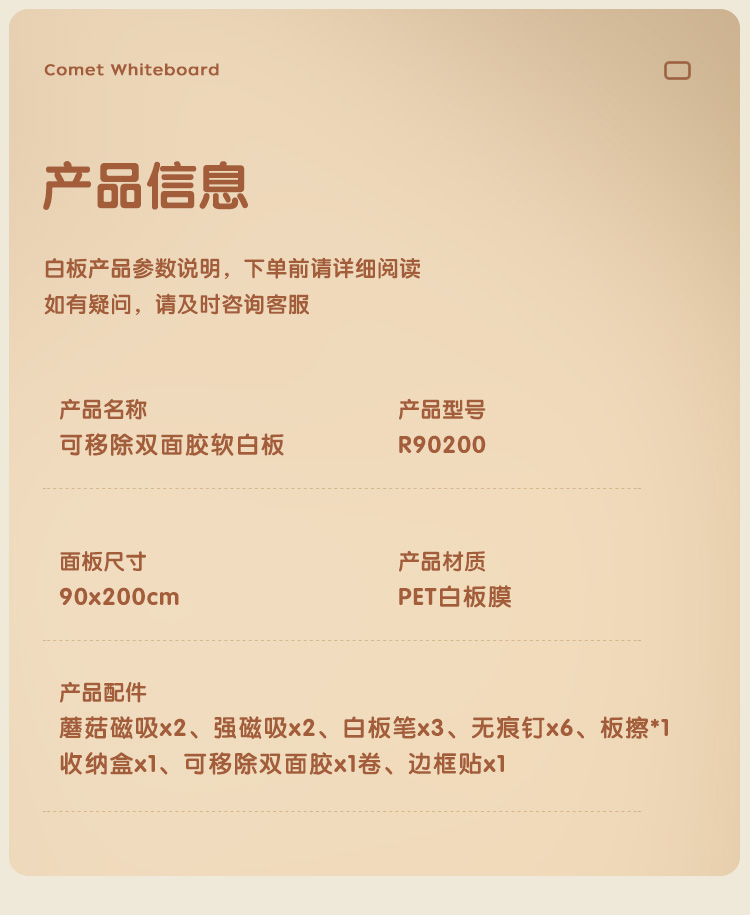 科密R90200 90x200cm软白板墙贴不伤墙可移除