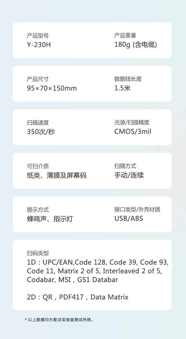 歌派Y-230H扫描枪 有线一二维码扫码枪