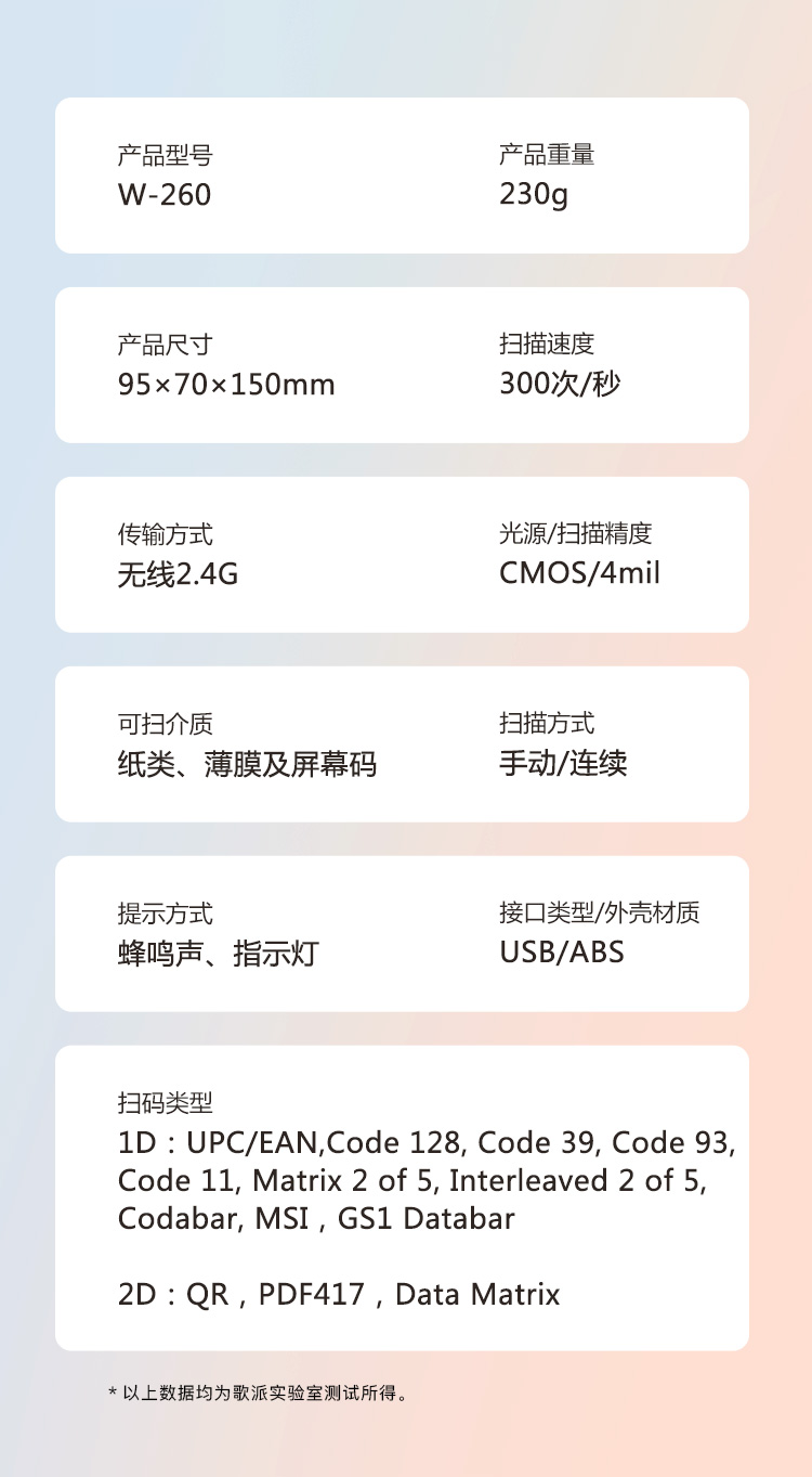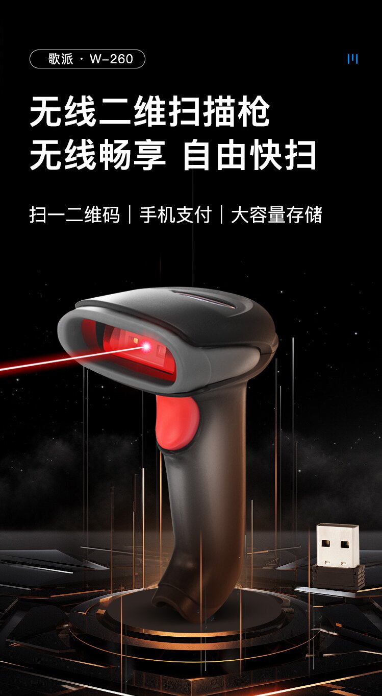 歌派W-260扫码枪 无线二维码 收银超市收款扫码