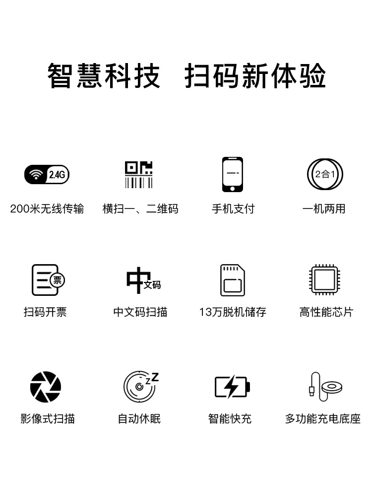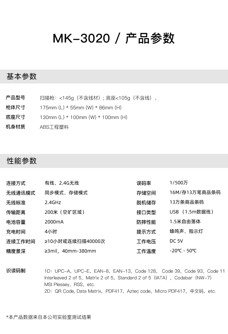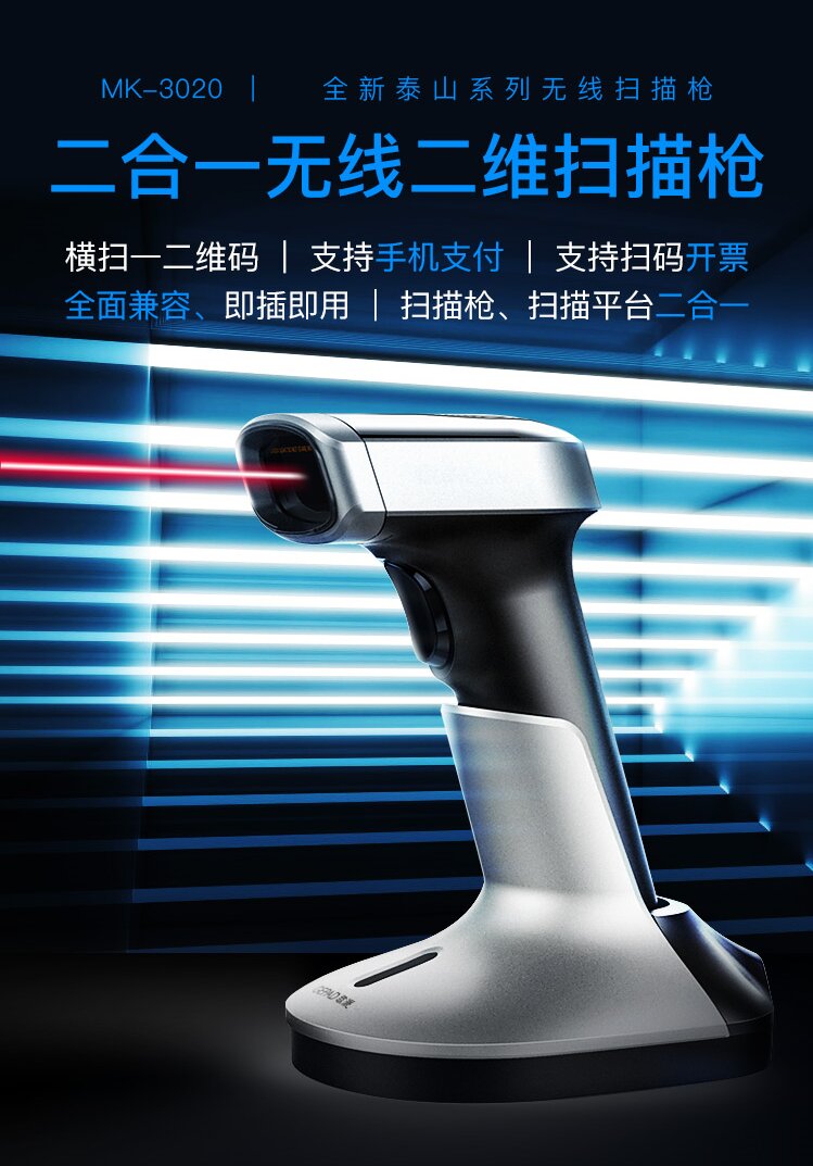 歌派MK-3020扫码枪 无线二维码超市收银收款码