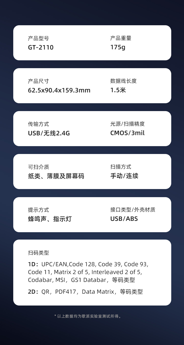 歌派GT-2110无线扫码扫描枪器 条码扫描二维码收银