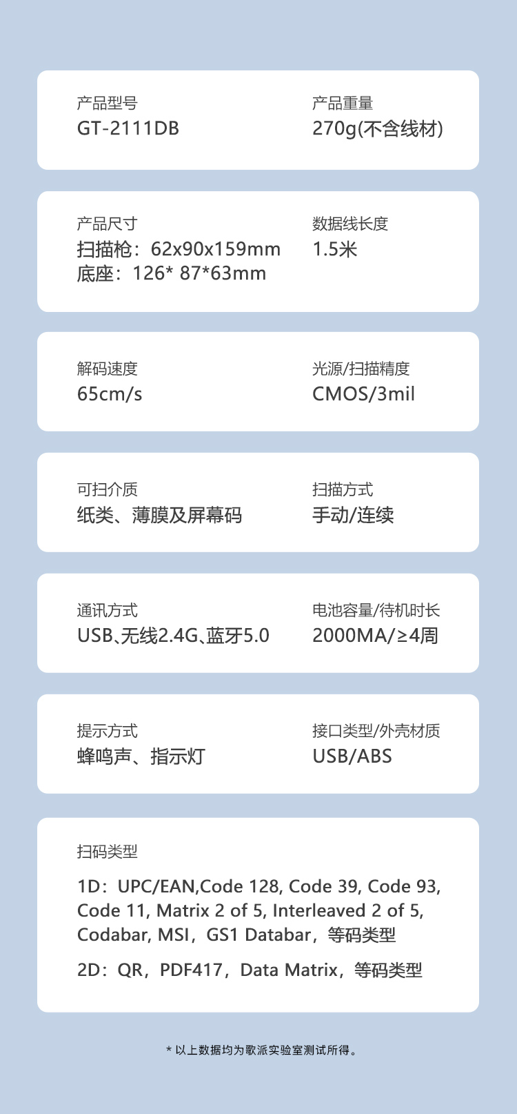 歌派GT-2111DB 无线扫码枪 带显示屏 条码扫描二维码