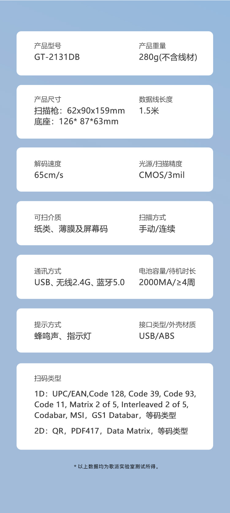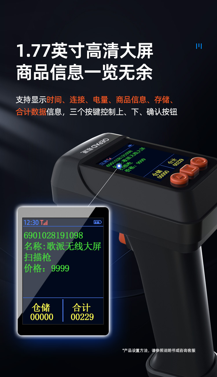 歌派GT-2131DB无线扫码扫描枪 大屏显示条码扫描二维码