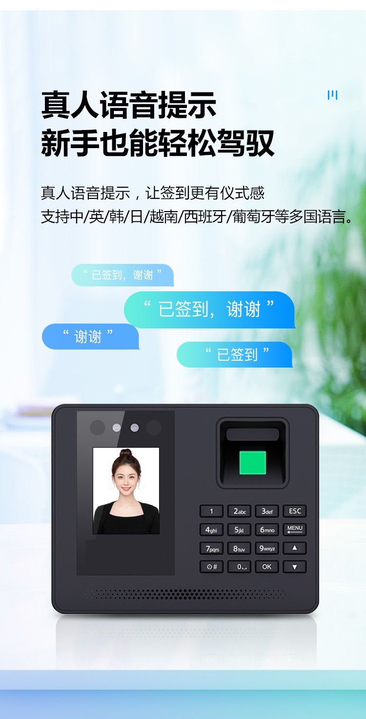 歌派RMQ-331打卡机 人脸+指纹识别考勤机