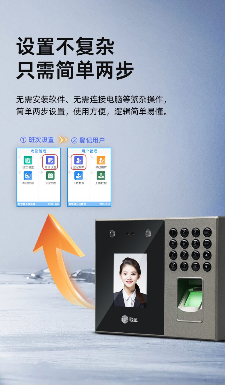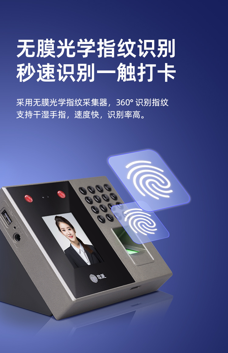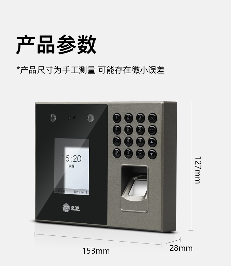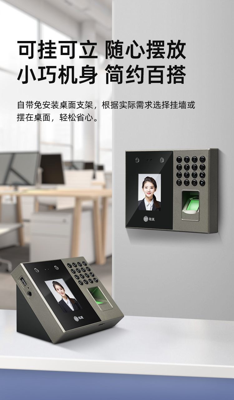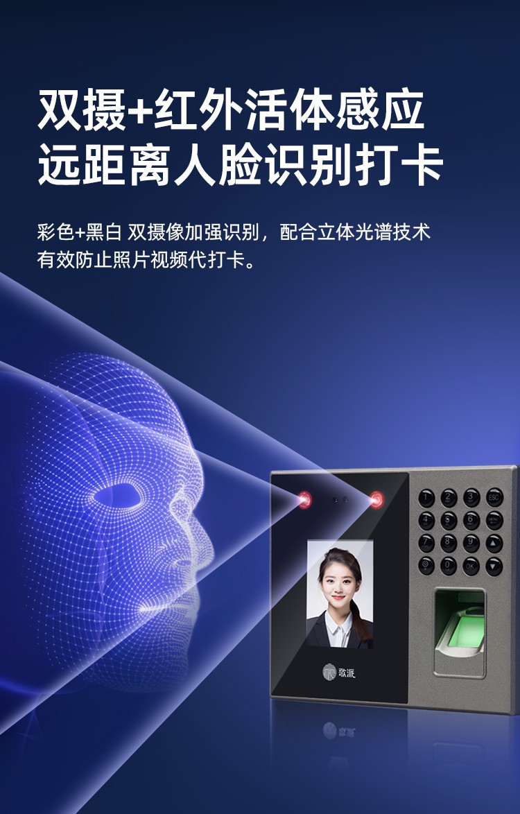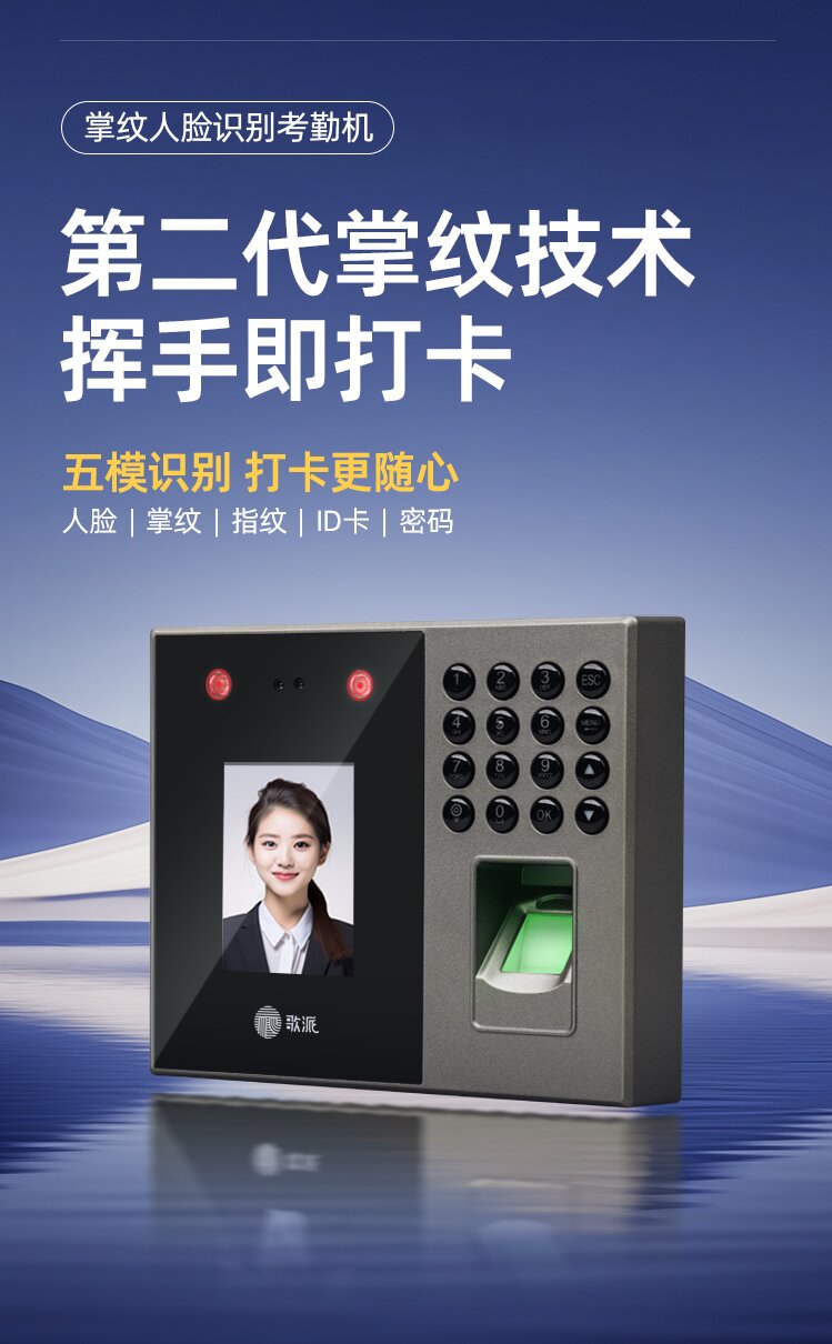 歌派P2掌纹+人脸+指纹打卡机混合识别考勤机