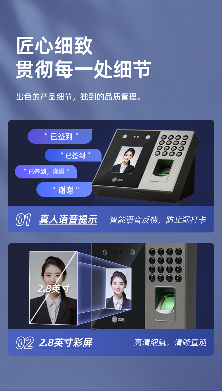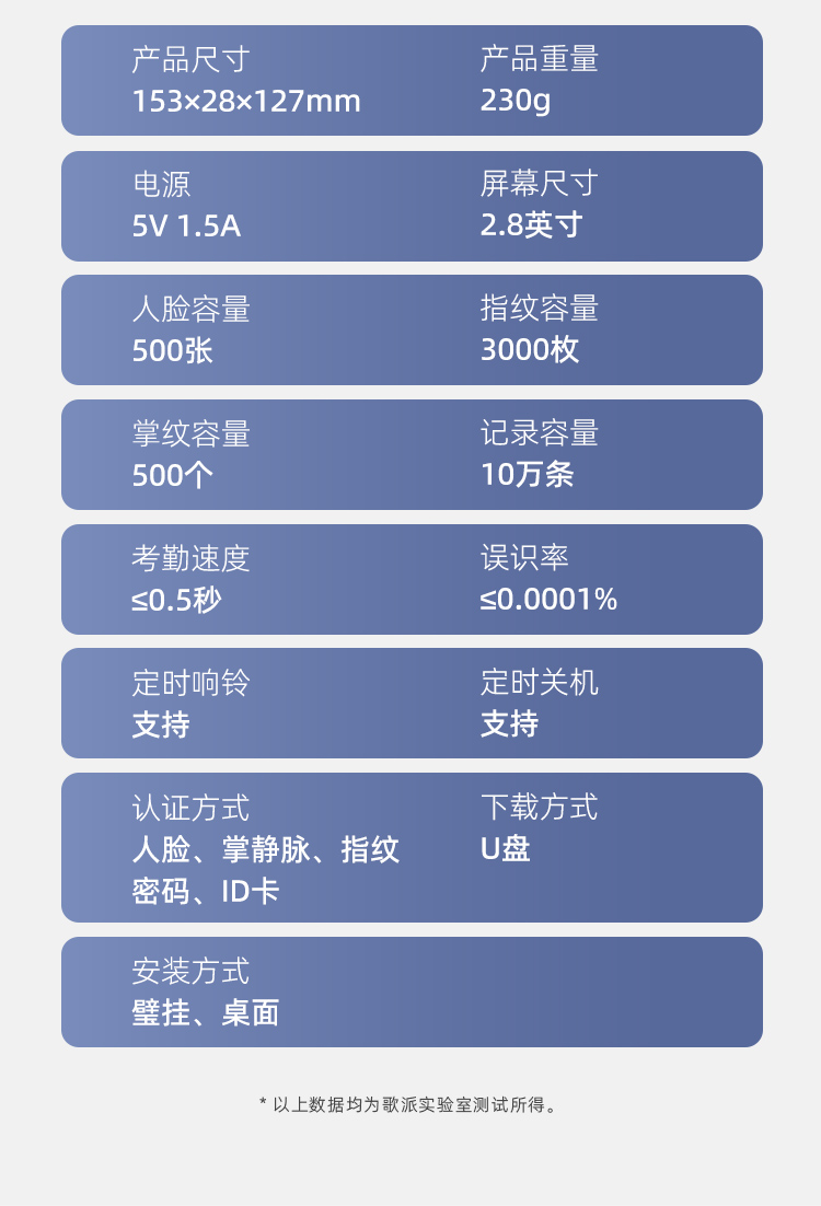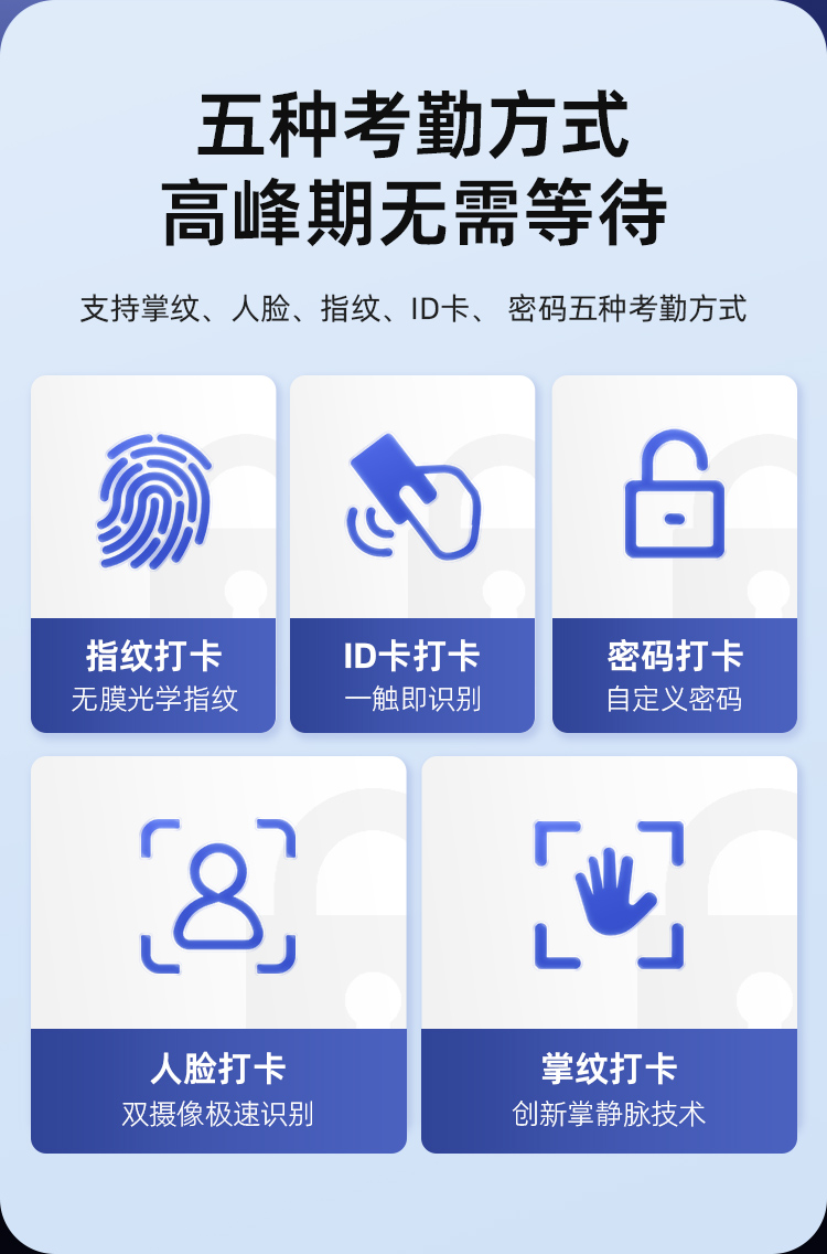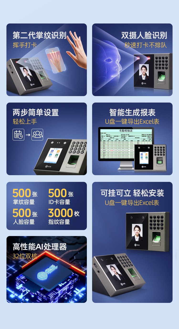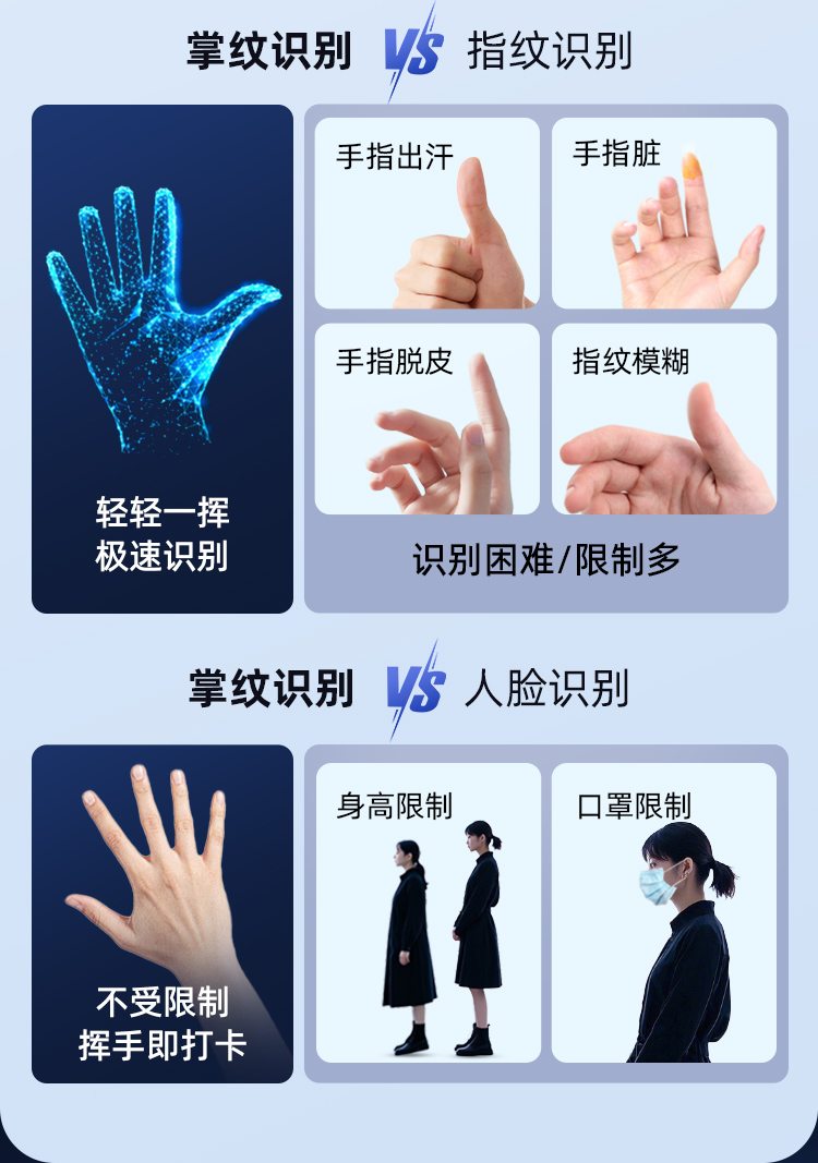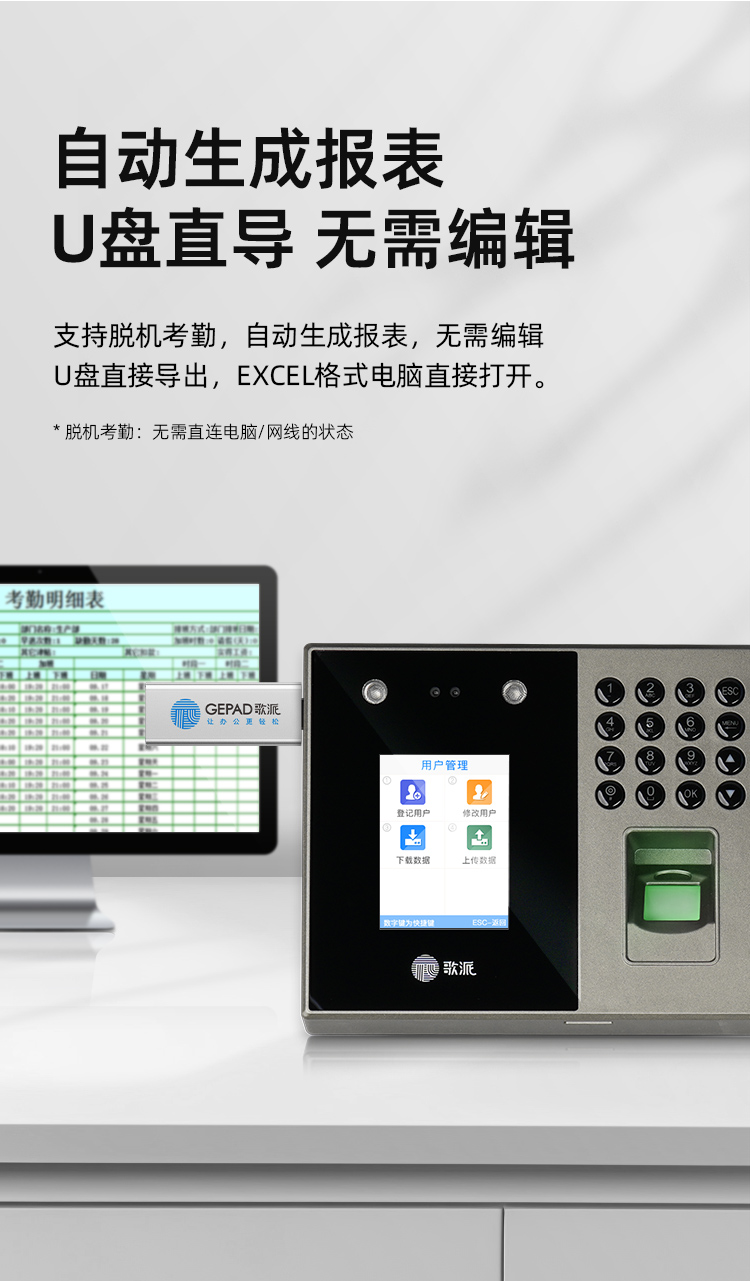 歌派P2掌纹+人脸+指纹打卡机混合识别考勤机