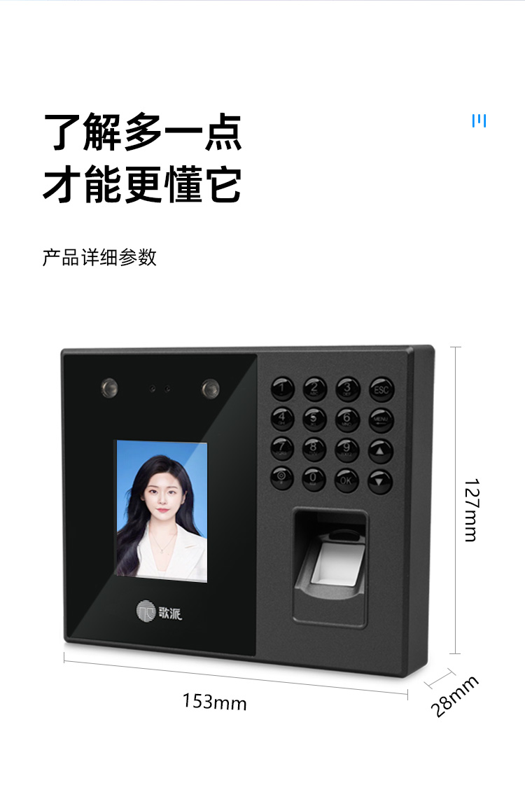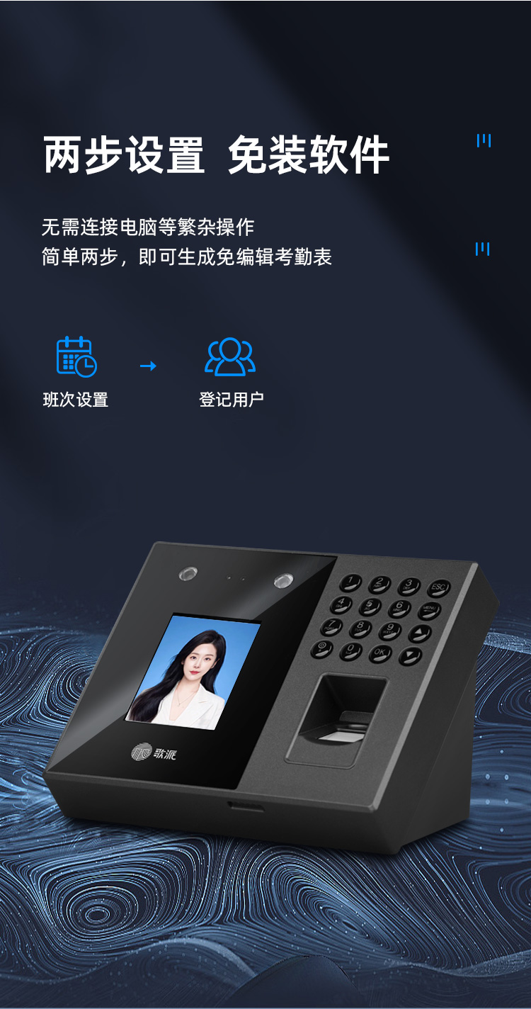 歌派P2W打卡机人脸+指纹混合识别考勤机蓝牙版小程序