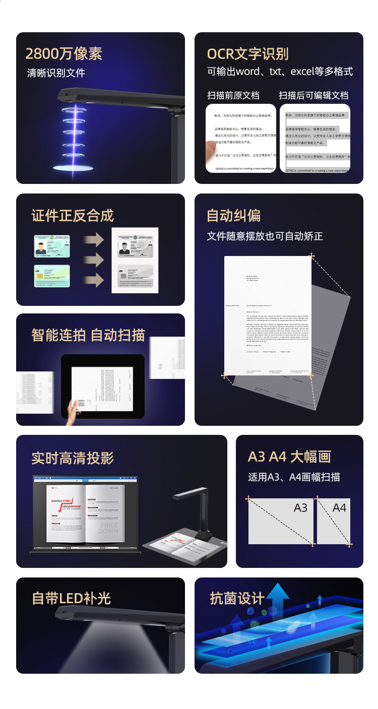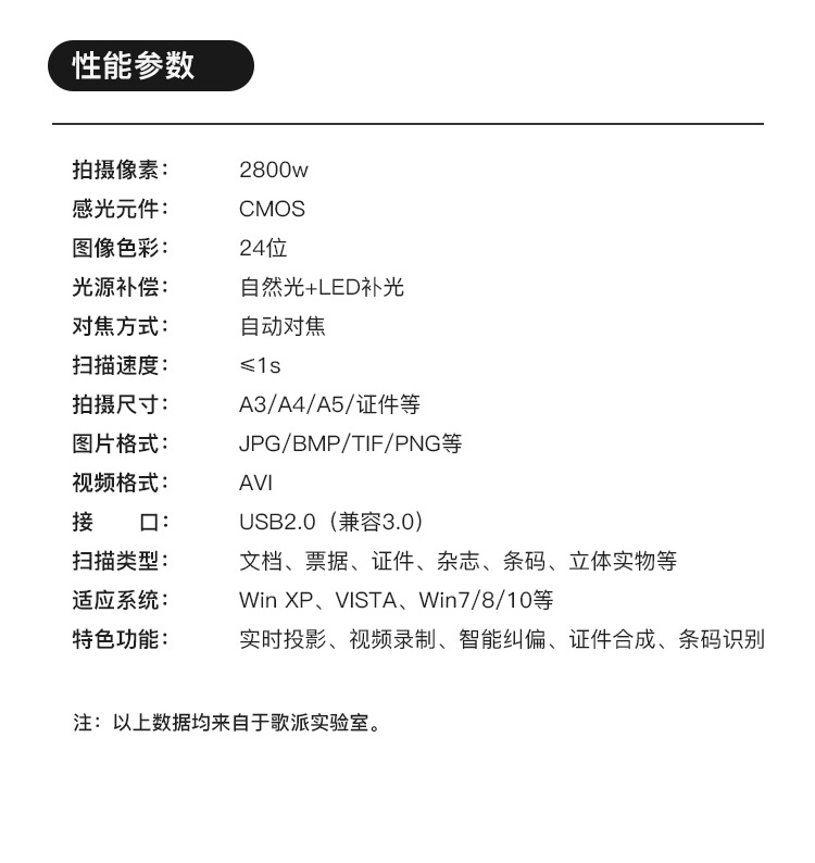 歌派高拍仪 2800万像素自动对焦 照片证件扫描仪