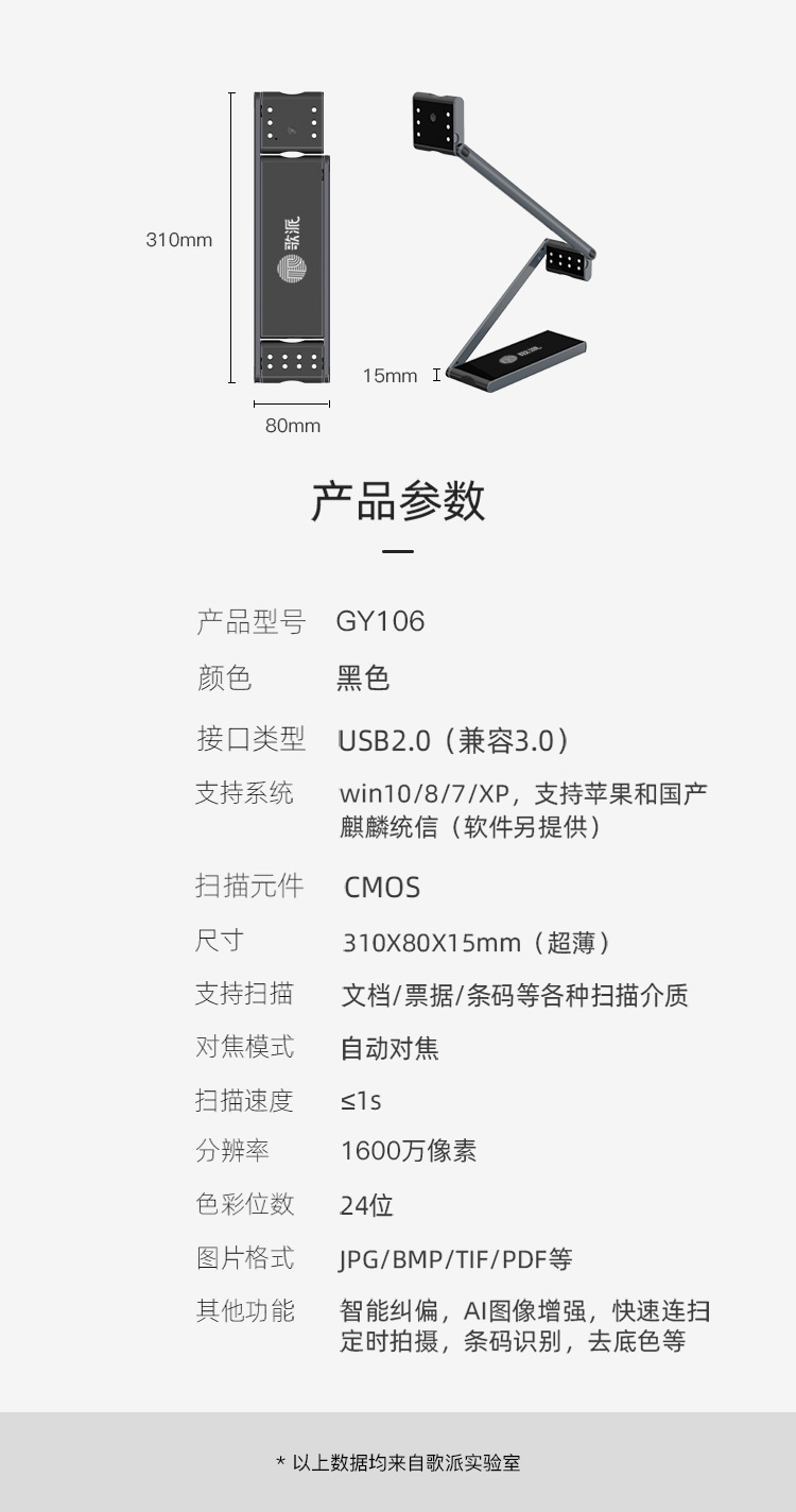 歌派GY106高拍仪 1600万像素自动对焦